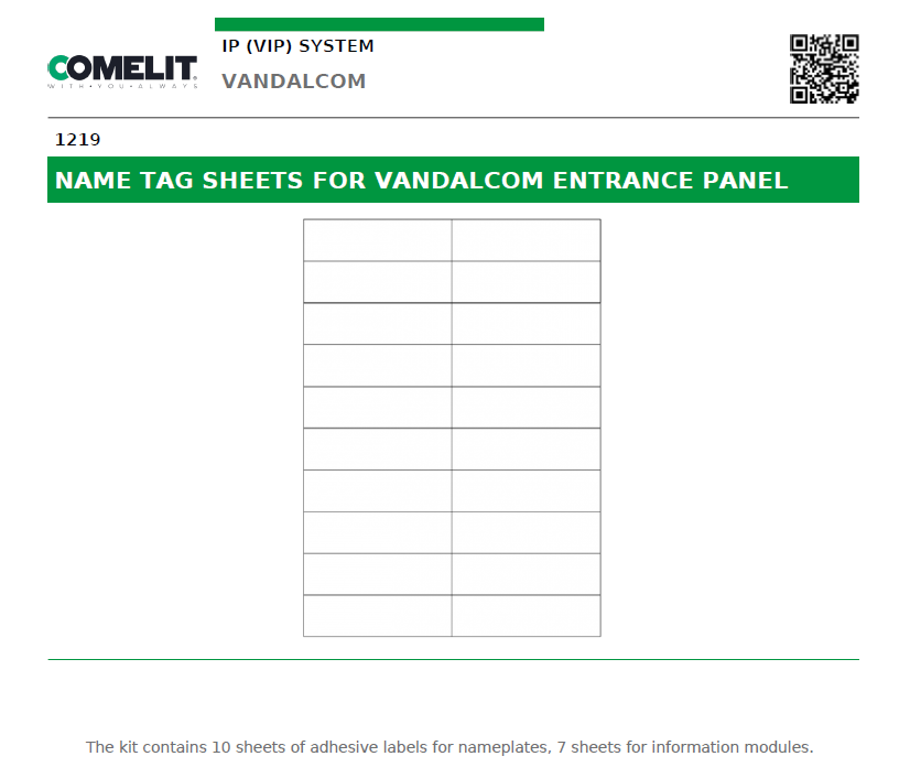 Quick view SKU: 1218 COMELIT | 1218 Intercom and Entry Accessory, Name Tag Sheets for Ikall Entrance Panel MSRP: Was: Price Now $99.00 Add to Your List